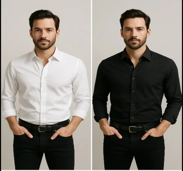 Olive green, navy blue, and deep burgundy add personality without clashing. An olive-green shirt paired with black jeans is a modern favourite that works in both casual and semi formal backgrounds.