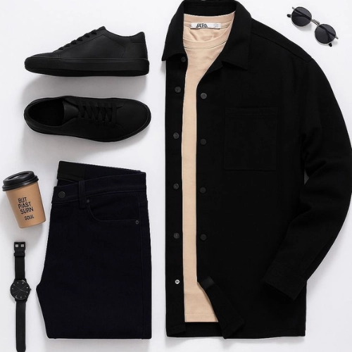 The black shirt blue jeans combination is among the most popular pairings for men. It balances the darkness of the shirt with the relaxed tone of denim.